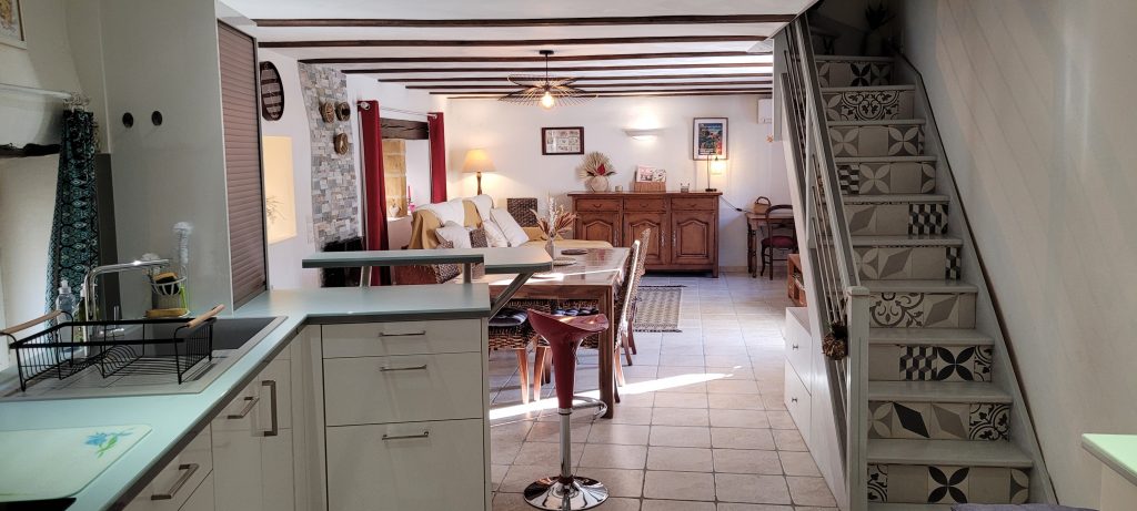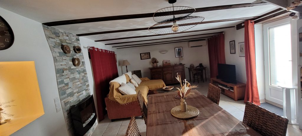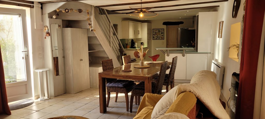 C’est une maison de 96 m2 agréable et confortable. L’été vous apprécierez sa fraîcheur grâce à ses murs épais en pierres.